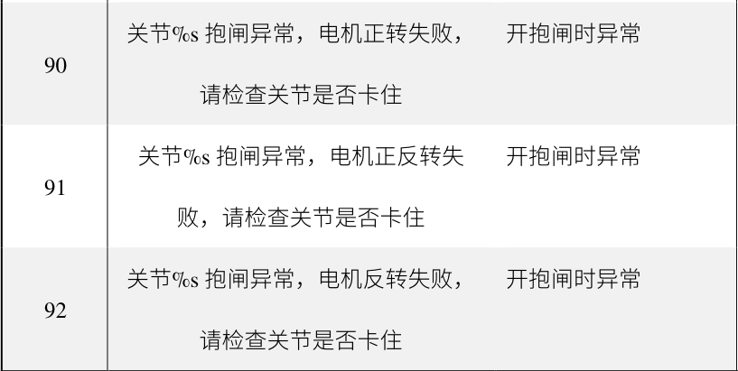 报警原因:关节打开抱闸时,电机会正反微动,确保抱闸系统正常开启。同时判断能否正反两个方向能否正常运动。该故障提示正向或反向无法运动。