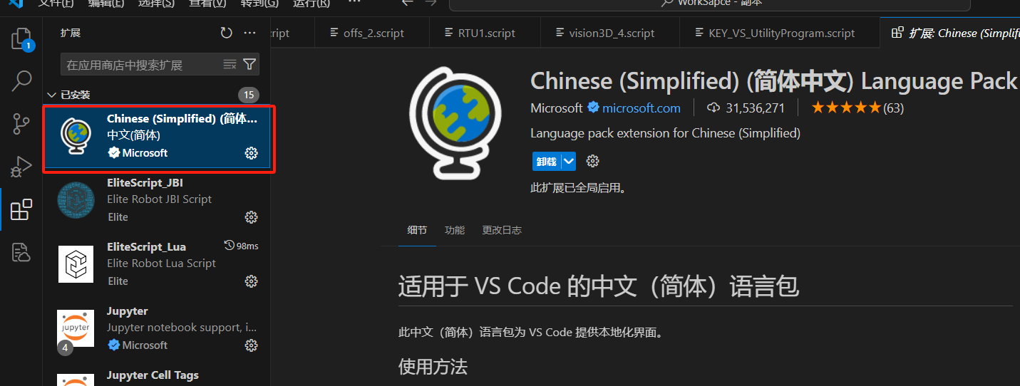 中文汉化包-Chinese (Simplified) Language Pack for Visual Studio Code