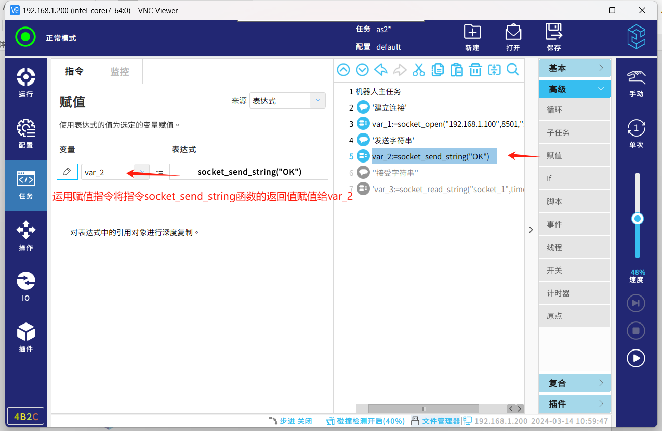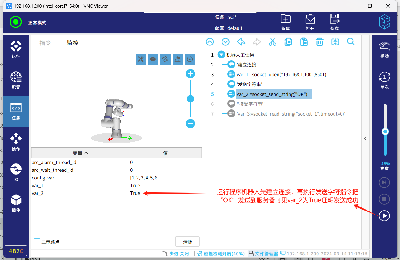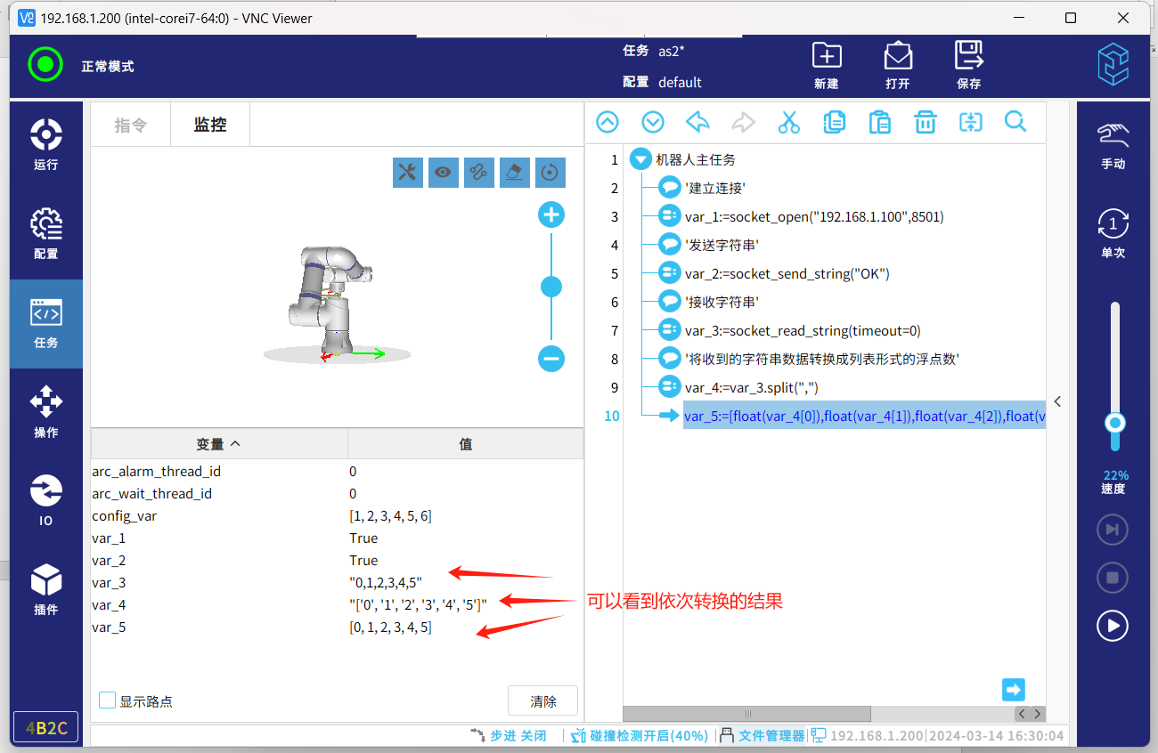 socket通信协议,一种标准的通信协议,同时是目前工业电子设备之间常用的通讯协议,市面上机器人与夹持器,视觉,上位机等通讯大多采用这种通讯方式。以下介绍机器人socket通讯基本的几个指令脚本,传输字符串数据和解析字符串数据。